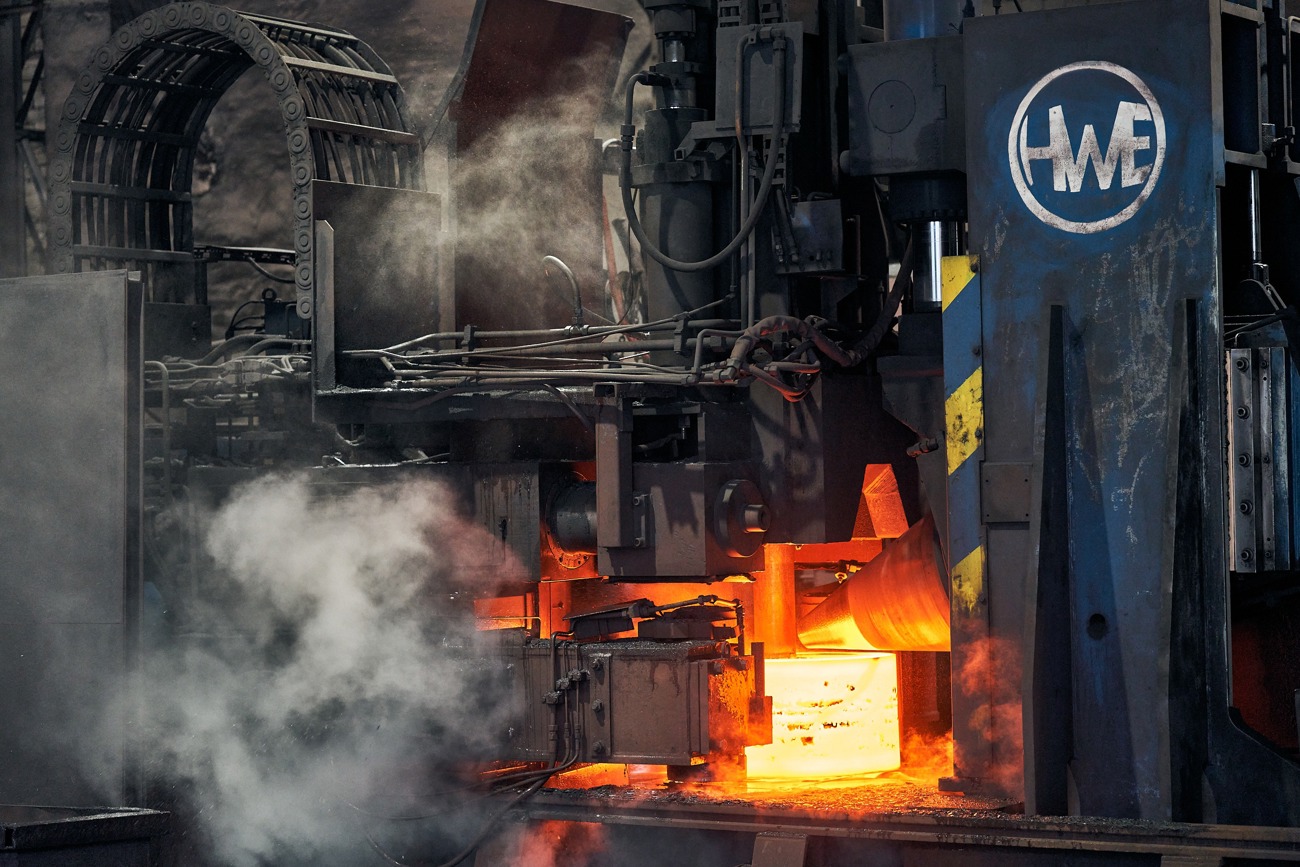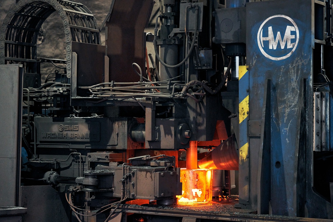Nahtlos, präzise und mit sauberer Oberfläche. Auf unserem Ringwalzwerk, ausgestattet mit modernen Steuerungs- und Messsystemen, werden dreidimensional vorgeschmiedete Lochscheiben zu nahtlosen Ringen gewalzt. Wir walzen radial-axial im offenen Kaliber: